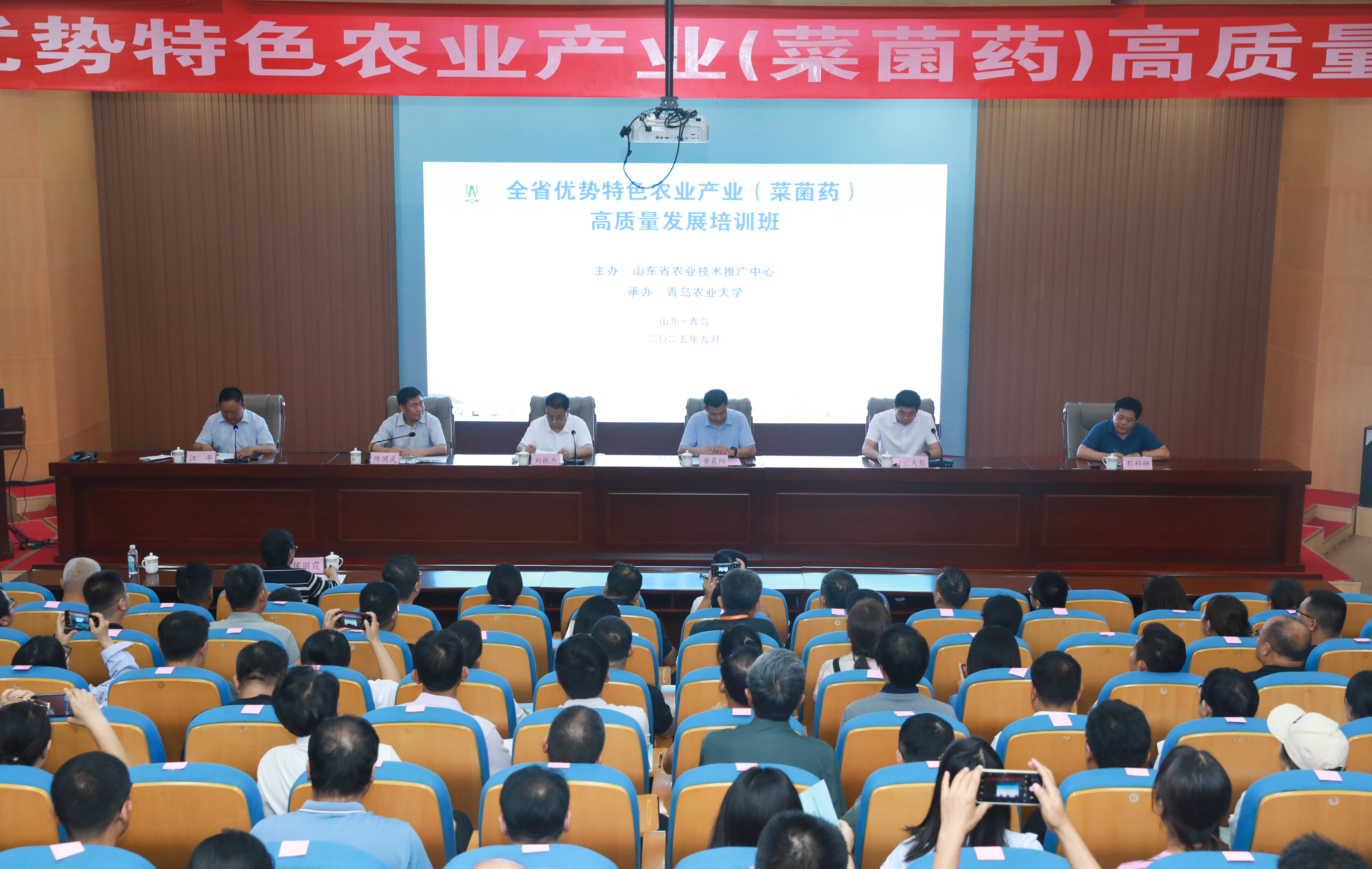 为深入贯彻乡村振兴战略,提升基层农技人员专业素养与推广服务能力,推动我省蔬菜、食用菌、中药材等优势特色农业产业高质量发展,9月15日,2025年全省优势特色农业产业(菜菌药)培训班在ylzzcom永利总站学术会馆开班。山东省农业农村厅党组成员刘振杰,国家食用菌产业技术体系首席科学家、中国农业科学院农业资源与区划研究所研究员黄晨阳,ylzzcom永利总站党委委员、副校长隋国武,山东省农业技术推广中心作物一部部长彭科研,青岛市农业农村局党组成员、副局长兰大彭出席开班仪式。山东省农业技术推广中心副主任江平主持仪式。