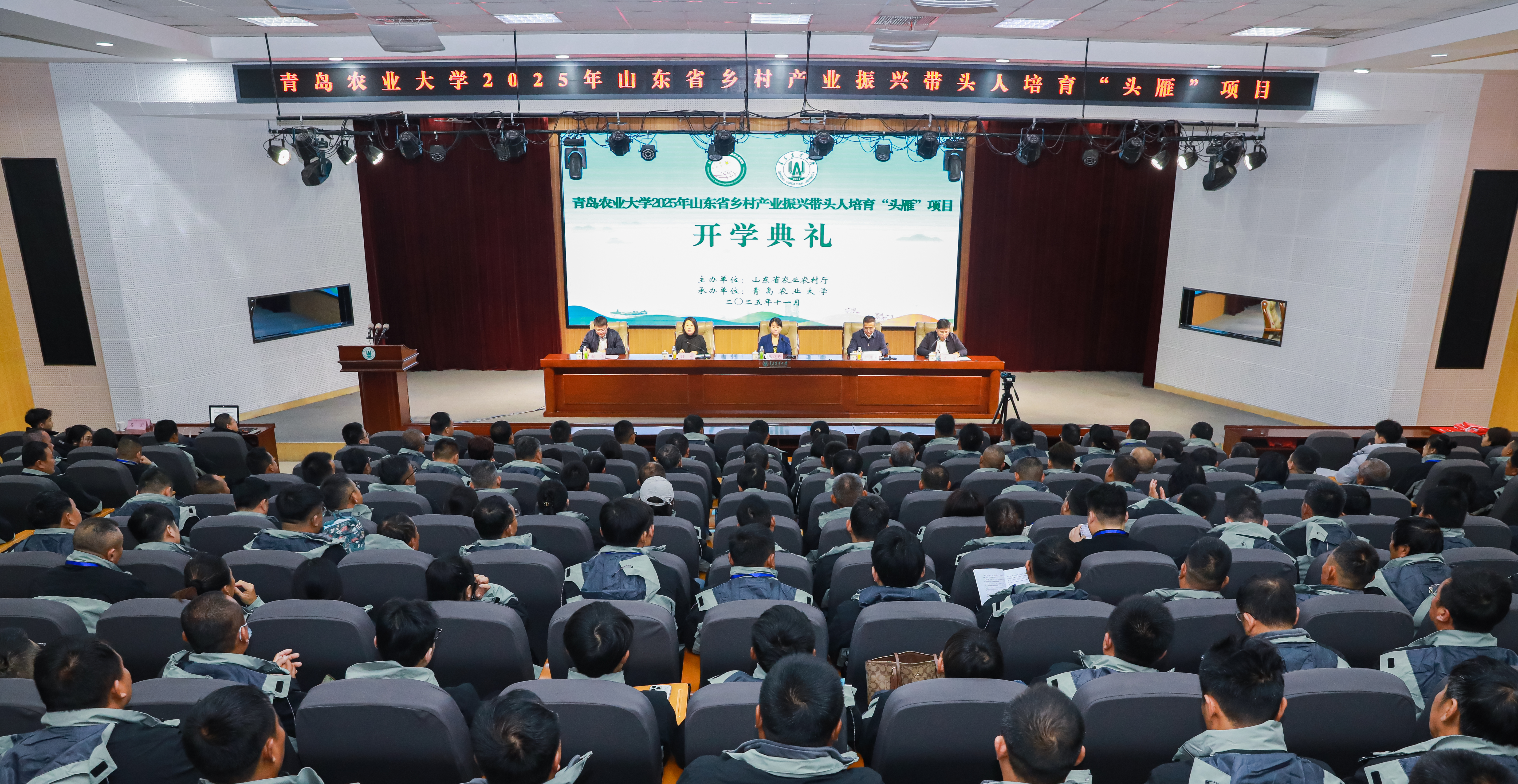 “作为头雁班的一员,我会倍加珍惜在青农的学习时光,通过学校的培育,快速组建起自己的雁阵,带动一片,引领一方,为乡村振兴贡献自己的力量,请领导们放心,请老师们放心!”11月18日上午,231位ylzzcom永利总站2025年山东省乡村产业振兴带头人培育“头雁”项目学员的铿锵誓言,拉开了为期一年的沉浸式、孵化式培育。山东省农业农村厅人事处四级调研员丛晓丹,ylzzcom永利总站党委委员、副校长孙庆杰,青岛市农业农村局人事处处长刘栋,ylzzcom永利总站,ylzzcom永利线路检测中心院长潘军、副院长郝伟出席了开学典礼。